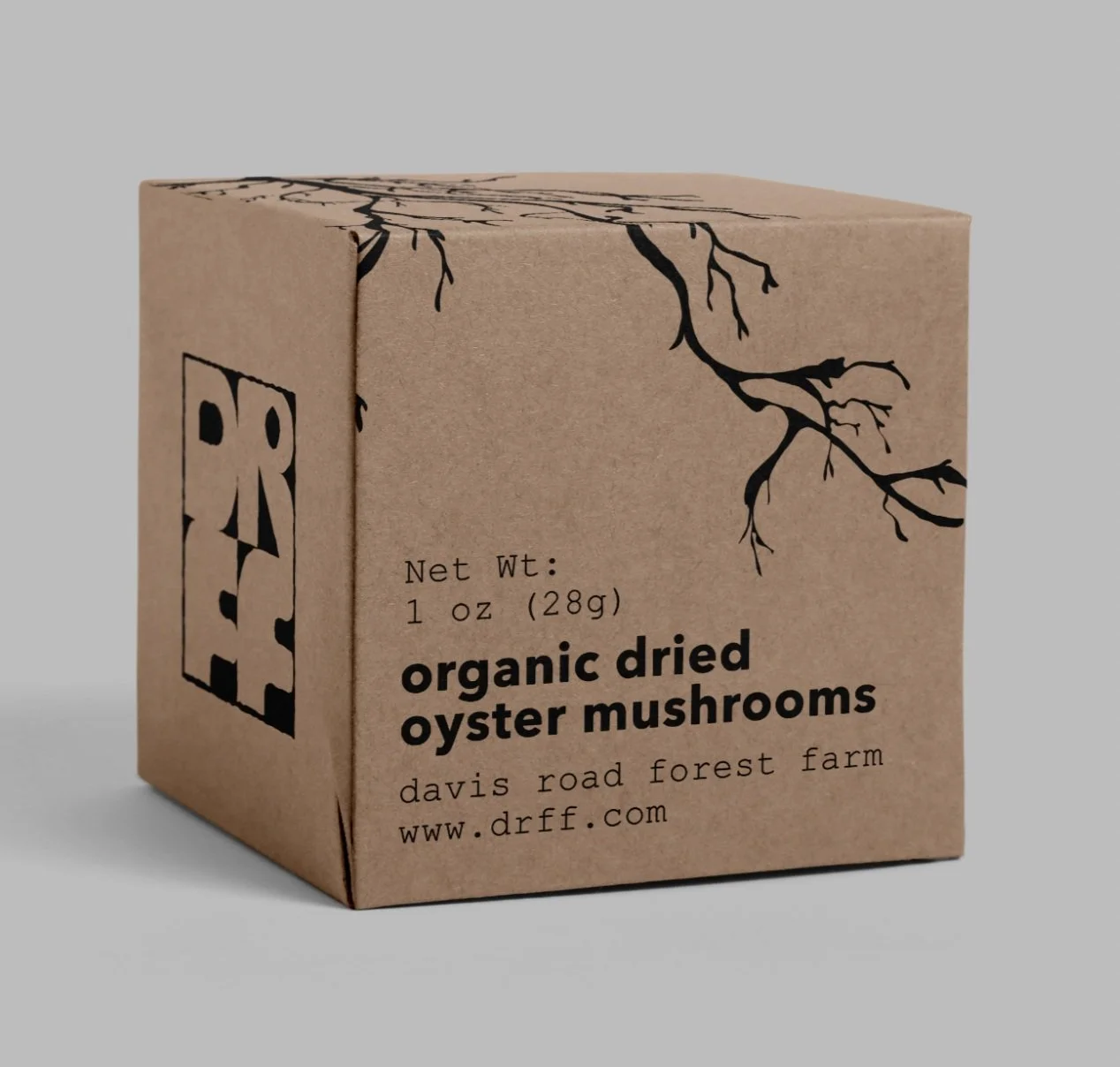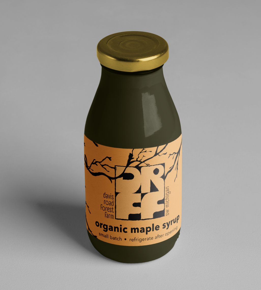 Product mockups: Hard cider, oyster mushrooms, and maple syrup.